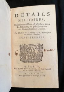 M.De CHENEVIERE Détails militaires. Paris, chez Mariette 1742. 2 volumes in-8 dos à nerfs ornés