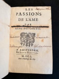 René DESCARTES Les passions de l'âme. Amsterdam, par Elzevier. 1650. In-8 plein veau tacheté , …
