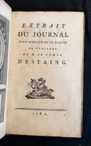 Monsieur le comte D'ESTAING Extrait du journal d'un officier de la marine... Un Volume 1782, reliure cartonnée Joint Abbé Raynal révolution de l'Amérique. Londres chez Davis 1781. Un volume in-8 plein veau (accident)
