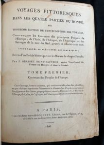 J.GRASSET SAINT- SAUVEUR Voyage pittoresque dans les quatre parties du monde. 1806. Chez la veuve Hocquart. Petit in-4, reliure d'éditeur remontée (nombreuses mouillures)