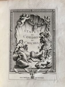 [SAINT-MICHEL] Statuts de l'ordre de Saint-Michel 1725. In-4, reliure cuir aux armes, dos à nerfs …