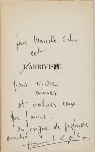 CHOPIN Henri.L’arriviste. Paris, Éditions Hautefeuille (Caractères), Janvier 1958. In-12, br. Bel envoi à Marcelle Cahn.