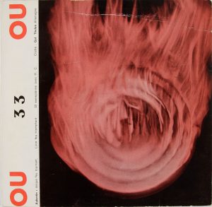 CHOPIN Henri.Revue OU-Cinquième saison. n°33, s.d. (fin 1967-68). 19 x 19,5 cm. Livret cousu, le rabat de couverture contient un disque vinyle 33 t. (Heidsieck, Dufrêne, Wolman, Chopin). Exemplaire sur offset numéroté. Tirage 1000 ex.