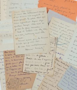 MARTIN Henri (1860-1943). Correspondance de 25 L.A.S. à Félix Seguin, Castelfranc, Paris et (s.l.), rédigées entre 1909 et 1924 quelques lettres (s.d.). 59 pp. in-12, in-8, in-4. 5 enveloppes conservées. Une carte lettre autographe signée à M. Szabo, [Paris, 21. 8. 13] 1 p. In-12. Adresse. Riche correspondance dans laquelle il évoque diverses expositions, son travail, ses relations avec les beaux-arts ainsi que de la correspondance personnelle. Mercredi [1915] il demande à son correspondant de prévenir «M. Valentino que je consens bien volontier à céder mes tableaux de San Francisco pour les expositions que désir organiser M. C. Sage [...]» ; le 9 avril 1909, il évoque son tableau la petite tête de fillette ; le 15 novembre 1912, il annonce l'envoi d'un tableau «des Dévideuses» pour une exposition à Berlin ; En septembre 1916, s'informe des «résultats de votre demande auprès du patron, au sujet de l'affaire AD, dont vous m'aviez parlé [...]» etc.