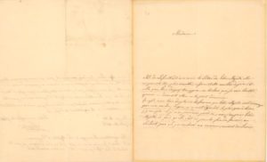 [BEAUHARNAIS]. BEAUHARNAIS Augusta-Amélie de. (1788-1851). Née Princesse de Bavière, épouse du prince Eugène de Beauharnais. L.A.S. à l'Impératrice Joséphine. Monza, 18 septembre 1806. 3 pp. bifeuillet in-4 sur papier gaufré en encadrement et liseré de jaune. Très belle lettre de la princesse à sa belle-mère l'Impératrice Joséphine, quelques mois après son mariage avec le Prince Eugène, Augusta est alors enceinte de son premier enfant. Mr de La Feuilliade lui a remis l'aimable lettre de Joséphine, qui l'a comblée de joie «[...] celle que vous daignez témoygner au bonheur que je vais bientôt éprouvé en devenant Mère, ne l'a point diminuée. J'accepte avec bien du plaisir la femme que Votre Majesté veut m'envoyer pour mes couches ; Eugène m'en avait déjà dit le plus grand bien. [...] mais j'ose prier Votre Majesté de faire qu'elle soit ici pour la fin janvier, ne sachant pas si j'accoucherai au commencement de février ou à la fin ; je ne saurai vous dire combien je suis rassurée d'avoir dans un moment pareil une femme sur laquelle je puisse compter, et c'est encore à Vous ma tendre Mère que je le dois. Comme vous avez encore la bonté de travailler pour moi, cela pourrait me rendre fière ; je possède déjà le charmant écrin qui fait mon admiration et celle de toutes les personnes qui le voye. Vraiment, je crains que tant de bonté ne me fasse des envieux [...]». Son frère Louis est auprès d'elle depuis lundi soir. «Vous devez concevoir la joie que nous éprouvons l'un et l'autre, il y avait si longtems que je n'avais vu personne de ma famille [...]. Mon frère n'a pu assez se louer des bontés que Vous Madame et Sa Majesté l'Empereur ont eu pour lui. il ne les oubliera jamais, de même que sa sœur [...]». Elle adresse en p.s. ses respectueux hommages à sa Majesté l'Empereur et adresse à l'Impératrice un voile fait «en soie d'araignée [...].»