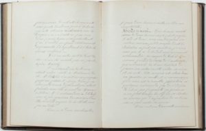 [CHAMBORD Henri duc de Bordeaux, Comte de (1820-1883)]. Manuscrit attribué à Moricet secrétaire d'Henri duc de Bordeaux Comte de Chambord, intitulé «De Frohsdorf à Constantinople et en Grèce». 413 pp. in-4, reliure d'époque pleine percaline noire avec litre poussé à froid au premier plat. Belle écriture lisible, présence d'une seconde main intervenue afin de faire des corrections (écriture postérieure). Voyage entrepris par le Comte de Chambord et sa suite (Moricet, le Duc de Lorge, le Duc de Modène, le père Buffoli jésuite. Dr Angelino chirurgien, etc.) après la mort du père Trebuquet (confesseur du Duc) entre le 13 avril 1868 et le 15 mai de la même année. Le périple emmena cet aréopage nobiliaire de Paris en Hongrie sur le Danube où ils embarquèrent à Basiach. Après quelques Owsowa Tumseverin en Roumanie arrivent à Constantinople de laquelle ils repartirent le 25 avr direction Athènes puis Magare, escales (dont Kalamaki, Corinthe (puis en bateau). Céphalonie, Corfou, Mt Pantaleone, Brindisi, Loretta Bologne, Venise. Ce récit de voyage comprend des descriptions poussées des contrées visitées, anecdotes historiques et géographiques, pensées personnelles et politiques, visites mondaines et hébergements dans les places ou chez des hauts personnages (nobles ou autres) des lieux visités, certains accompagnant le duc et sa suite sur plusieurs jours. Cet exemplaire est accompagné d'une facture d'hôtel, de 4 lettres autographes signées de témoins de ce voyage de deux photos d'époque.