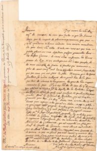 [GUERRE DE RELIGION]. FALGUEROLLES [David]. Longue lettre signée «Fauguerolles» adressée à Jean de Gentil, gouverneur de Florac. «Montp»[ellier], 16 août 1625. 1 p. in-folio. Adresse, quelques déchirures sur les marges dont une importante au niveau du système de fermeture avec manque de papier hors texte. Il répond au gouverneur Jean de Gentil et le félicite «que par vtre prudence et bonne conduite vous avier mamtenu la paix dans vtre ville [...]» Il évoque ensuite la politique royale, des levées d'armée et «Monsr le Cardinal de Richelieu, qui est trop bon français pour luy [...]». Très intéressant document.