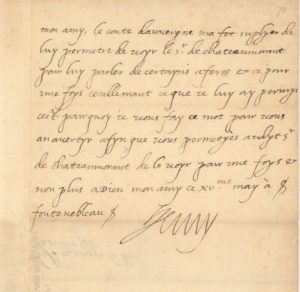 HENRI IV (1553-1610) Roi de France. L.A.S. à «Mon cousin le duc de Sully», Fontainebleau 15 mai …