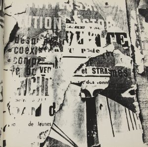 DUFRÊNE François, VOSTELL Wolf.Tombeau de Pierre Larousse. (Texte d’) Alain JOUFFROY, Oreille pour un tombeau. Wuppertal, Verlag der Kalender, 1961. In-4, (30 x 30 cm), br. Édition mise en page par Vostell. 23 photos de décollages imprimées en...