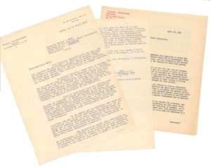 JOLIOT-CURIE Frédéric (1900-1958) Gendre de Pierre et Marie Curie, ce physicien et chimiste Français obtint conjointement avec son épouse le prix Nobel de chimie en 1935. L.D.S à Monsieur Ernest T. Weir. Paris, le 23 avril 1956. 2 pp in-folio. À propos du dernier Conseil Mondial de la Paix et des réductions réelles d'armements. «Tout en approuvant tous les efforts pour trouver un compromis valable conduisant à des réductions réelles d'armements, le Conseil Mondial de la Paix, qui s'appuie sur l'opinion publique et s'efforce de l'éclairer pour la faire agir, ne pouvait renoncer à exprimer les principes généraux contestants dont il estime, en fin de compte, la réalisation nécessaire : Le Conseil Mondial insiste pour un désarmement général et pour l'élimination absolue des armes atomiques [...]». On joint une transcription dactylographiée de la lettre en langue anglaise.