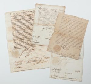 PHILIPPE II et entourage (1527-1598) Roi d'Espagne, de Sicile et du Portugal. RECTIFICATIF AU CATALOGUE : PORTANT LA SIGNATURE DE PHILIPPE II Très bel ensemble de 4 documents avec cachets aux armes sous papiers et adressés à divers membres de sa cour. L.S. «Yo el Rey» Lisbonne, le 10 janvier 1530. 1 p. in-folio. Adressée au capitaine général de l'artillerie espagnole Juan de Acuna Vela ; P.A.S. contresigné par Pedro Afan de Ribera duc d'Alcala et vice-roi de Catalogne et de Naples (s.l.) Avril 1565. 1 p. in-folio ; P.S. contresigné par Pedro Afan de Ribera duc d'Alcala et vice-roi de Catalogne et de Naples. Naples le 23 septembre 1563. 1 p. grand in-folio ; P.S. «Yo el Rey» à propos de son «très cher et bien aimé ami» le cardinal [(Girolamo Recanati Capodiferro)] ? (s.l.n.d). 1 p. in-folio.