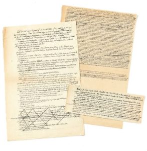 AYMÉ Marcel (1902-1967) La Retraite de Russie. Fragment de manuscrit autographe, (s.l.n.d.1930). 2 pp. 1/2, 22 x 31 cm, fine écriture à l'encre noire. Il s'agit de fragments du manuscrit original de «La retraite de Russie». Marcel Aymé travaille sur La Retraite de Russie en mars 1930, cette nouvelle paraîtra dans Les Nouvelles Littéraires du 5 avril 1930. L'écriture de ces deux pages devient de plus en plus fine et ramassée. Ces pages sont riches de corrections ; elles ne sont pas numérotées, et ne comportent aucune mention de chapitre. Cette nouvelle conte une rivalité entre deux élèves. Le premier, «Le petit Doré» bon élève et roux, le second Léon Jard mauvais élève, jaloux du premier. Léon Jard joue un mauvais tour au petit Doré et celui-ci profite d'une leçon d'histoire sur le maréchal Ney pour prendre sa revanche. Provenance : au propriétaire actuel par descendance de l'auteur. Bibliographie : Marcel Aymé, Œuvres romanesques complètes (Ed. Yves-Alain Favre), t1, Bibliothèque de la Pléiade n°352. Document bénéficiant d'un CBC