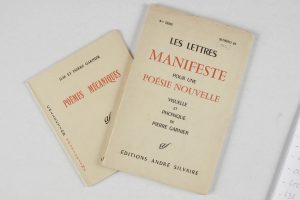 GARNIER Pierre.Manifeste pour une poésie nouvelle, visuelle et phonique. Les Lettres, André Silvaire, n°29, (1962). In-8 en ff sous chemise imprimée.Joint :- Ilse et Pierre Garnier. Poèmes mécaniques. André Silvaire, Collection « Spatialisme...