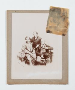 HUGO Victor (1802-1885) - JERSEY. Ensemble de 2 documents. Photographie noir & blanc, contrecollée sur carton. Portraits de Charles Hugo assis à gauche, François-Victor Hugo debout au centre et Victor Hugo assis à droite, son chapeau dans la main droite. Photographie réalisée à Jersey, indication «mullins, Jersey, 1850» (25,8 x 19,7 cm) ; Négatif de la photographie intitulée «Victor Hugo et Auguste Vacquerie assis devant la fenêtre de Marine Terrace», Jersey, entre 1853-1855. Portrait de Victor Hugo et Auguste Vacquerie [photographie par Charles Hugo]. Négatif déchiré dans la largeur (environ 8,6 x 10,7 cm).