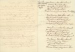 MUSSET Alfred (1810-1857). L.S. à Monsieur Urbain Canel, (s.l.n.d.) 1 p. in-8. Adresse, marques postales. Il annonce «Je reçois à l'instant deux offres d'article sûrs, deux journaux, dont l'un est le Courrier. Il faut te hâter de paraître pendant qu'on s'occupe d'eux, & comme je disais, battre le fer quand il est chaud. [...]». On joint un manuscrit de 2 pp. in-8, «Réponse à la balade de M. Becker par M. Alfred de Musset» (Charpentier 1857, p 184/185) au dos le poème de M. Kikolaus Becker intitulé le Rhin allemand.