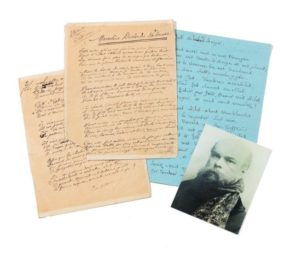 VERLAINE-DESBORDES VALMORE. VERLAINE Paul (1844-1896). Poème autographe signé à Marceline Desbordes-Valmore [21 avril 1885] 2 pp. in-4. Très beau et long poème sur Marceline Desbordes Valmore «Telle autre gloire est, j'ose dire plus fameuse/ Dont l'éclat éblouit mieux encore qu'il ne luit/ La sienne fait plus de musique que de bruit/ Bien que de pleurs brûlants écumeuse et fumeuse/ Vient mêler son sanglot qui finit en prière/ Universelle et la beauté même d'un art/ Issu du sang lui-même et de la vie entière/ Rire, larmes, désirs et tout comme au hasard/ Car elle fut artiste et sous la fougue ardente/ Dont va battre son vers vibrant comme son cœur/ On perçoit et l'on doit admirer l'imprudente/ Main au prudent doigté tout vigueur et langueur/... En harmonie avec la femme et le génie/ Il est juste, il est temps pour l'honneur de ses vers/ Non ils sont ton honneur même et ta fleur bénie/ Sa patrie ô Douai, «Doux lieu de l'univers.../De ces poèmes dont nous célébrons la fête/ Intellectuelle et cordiale, et ô Toi, / Ô grande Marceline, ô sublime poète/ et femme exquise, accueille cet acte de foi !» DESBORDES VALMORE Marceline (1786-1895) écrivaine française. D'abord actrice, elle se consacra à la littérature, écrivit des contes pour enfants et de nombreux poèmes élégiaques, réunis dans le recueil Poésies (1842) suivi en 1860 de Poésie inédites. Avec une grâce mélancolique, elle y exprime ses tristesses et ses douleurs (elle perdit quatre enfants) comme ses élans mystiques (La couronne effeuillée) avec un «naturel» que Baudelaire a loué et sur des rythmes subtils, souvent impairs que Verlaine reprendra. Poème autographe intitulé «Les Ailes d'ange» (s.l.n.d.). 2 pp. in-folio sur papier bleu. «Vous aussi, vous m'avez trompée, Avec vos traits d'ange et vos pleurs [...] Quand vos ailes alors tremblantes Viennent se reposer sur moi [...] Saviez-vous qu'une voix plaintive Pût toucher un cœur à la mort ? [...] Charmez votre exil sur la terre, Sous d'autres cieux, par d'autres fleurs [...]». Poème publié in Les Pleurs, Madame Goullet, Libraire, 1834 (p89-93). Littérature pour le poème de Verlaine : Pléiade, Œuvres poétiques complètes, dans les Dédicaces p 640 et 641. Littérature Document bénéficiant CBC