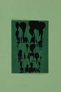 HEIDSIECK Bernard.Foules. Anvers, Guy Schraenen, 1974. In-4 en ff sous chemise. Impression sur papier de différentes couleurs. Tirage 550 ex. 1/20 contenant une œuvre originale « Les solitaires » de Bernard Heidsieck, signée.