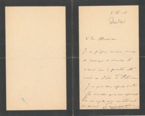 DUKAS Paul (1865-1935). L.A.S. (s.l.) à un «Cher Monsieur», le 2 mars 1908. 1 p. in-12 sur papier de deuil. «Je ne prépare aucun envoi de musique de chambre et n'aurai rien à présenter au Salon d'Automne. Je ne puis donc répondre à votre offre [...]». Provenance : Coll. Evesque.