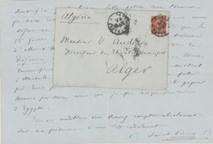 SAINT-SAËNS Camille (1835-1921). Très bel ensemble de 5 L.A.S. et 2 manuscrits musicaux autographes signés «l'Amour blessé» et «Espana y Francia recuerdito dédicacé à la senorita Fermina Enriquez» [Les cloches de las Palmas]. (s.l. [Las palmas de gran canaria et Alger]) Paris, Hammam Righa et Aix-les-Bains, avril 1897, 23 janvier 1919, 5 mai 1921, 23 juillet 1911, 5 septembre 1909, 23 juin 1910 et janvier 1921. 32 pp. in-folio, in-4, in-8 et in-12. 2 enveloppes cachetées avec suscriptions et marques postales sont conservées. «Cher monsieur, je suis encore retenu à Paris pour quelques jours, peut-être jusqu'au 10 décembre ; ensuite j'irai à Monte Carlo pour m'occuper des décors de Déjanire [...]» ; «Ma chère Caro, hier j'avais l'intention d'aller vous voir en sortant de l'institut mais la séance était d'une longueur exceptionnelle [...]» ; «Non je ne suis pas à Londres j'ai eu un empêchement [...]» ; «Mon cher ami, les points d'orgues sont arrivés c'était une copie de l'interprétation que vous avez demandé [...]» Ma chère Laura, je suis tout confus d'envoyer une autre lettre avant que ayez reçu la mienne ! [...] J'hésitais sur le nom de cette rue; je n'étais sûr que du numéro 22 [...] J'avais demandé le renseignement nécessaire à Mme de Galland et je ne l'ai reçu qu'hier [...]». Manuscrit musical «L'Amour blessé» Les Cinq Poèmes de Ronsard tout d'abord, poète pour lequel Saint-Saëns a toujours eu un faible ont été composés rapidement, dès son arrivée en Algérie où il avait l'habitude de prendre ses quartiers d'hiver. Il reprend des poésies qu'il avait emportées dans ses malles «À tout hasard» et, entre le 22 décembre 1920 et les premiers jours de janvier 1921, il met en musique Grasselette et Maigrelette, À Saint- Blaise, suivi de L'Amour blessé, puis de L'Amant malheureux. De cette longue pièce de deux cent dix vers, le musicien n'a conservé que les vingt-huit premiers et les vingt derniers. L'Ode XVI («L'Amour piqué par une abeille») de quarante vers sera intégralement mise en musique sous le titre donné par Saint-Saëns de L'Amour blessé . C'est le seul poème où le musicien a opéré quelques menus aménagements dans les vers afin de les rendre plus «chantables» (il remplace par exemple «tes amoureuses sagettes» par «tes venimeuses sagettes»). Le cycle se clôt par L'Amant malheureux, poème de huit strophes appartenant à ceux «attribués» à Ronsard, et auquel avait été donné le titre «Chanson». Saint-Saëns utilise les strophes 1, 2 et 4 en répétant à chaque fois le dernier vers. Les cloches de las Palmas, une des six études pour piano, op.111. Cette étude est dédiée à Fermina Henrique de Lleó (1875-1949) l'une des pianistes les plus remarquables de son temps. Saint-Saëns la distinguait avec une affection notoire et fréquentait sa maison lors de ses derniers séjours à Gran Canaria en l'année 1897.