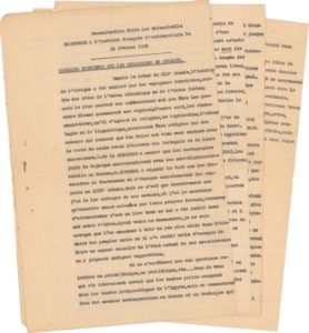 [Institut Français d'Anthropologie]. Tapuscrit rédigé par mademoiselle Homburger. Le 11 …