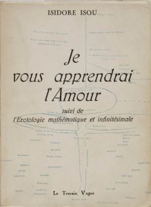 ISOU Isidore.Je vous apprendrai l’amour. Suivi de l’érotologie mathématique et infinitésimale. Paris, Le Terrain vague, (1957). In-8, br. Édition originale, bien complète de la planche dépliante des équations de l’Érotologie mathématique.