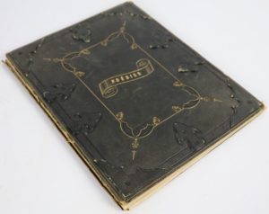 CALLIGRAPHIE. — Poésies. Recueil titre et 5 ff. In-4, chagrin vert orné. Manuscrit calligraphié comprenant sur un titre et 5 feuillets, des poèmes signés Beuzeville, V. Hugo, Arnault, Ausone Chancel. Feuillets jaunis avec manques, en marge, f. détachés, reliure cassée.