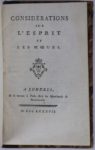 CHOISEUL-GOUFFIER (Comtesse de). Mémoires historiques sur l'empereur Alexandre et la cour de Russie. Paris, Leroux, 1829. In-8, demi veau brun légèrement frotté, dos lisse orné. Édition originale. Rousseurs, tache sur les premiers feuillets. Joint : [SENEC DE MEILHAN. Gabriel.] Considérations sur l'esprit et les moeurs. Londres. Chez les Marchands de nouveautés. 1787. In-8, veau granité légèrement frotté, dos lisse orné.