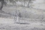 Dessins originaux au crayon : Paysage, avec esquisses de personnages. H_21 L_16,5 cm. Paysage, …