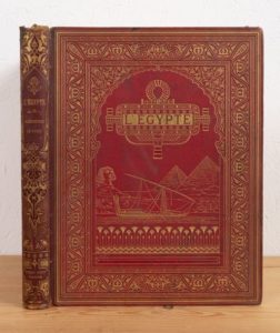 EBERS (Georges). L'Égypte. Alexandrie et Le Caire. Paris, Firmin Didot, 1880. In-folio, demi-chagrin rouge, plats de percaline ornés (Rel. éditeur). Édition originale de la traduction française par G. Maspero, abondante illustration in-texte. Coiffe sup. manquante, frottements. Qq rousseurs.
