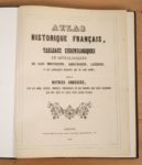 JACOTT (J.). Atlas historique français, ou tableaux chronologiques et généalogiques des races mérovingienne, carolingienne, capétienne et des principales branches qui en sont sorties. Suivis de notices abrégées sur les rois, reines, princes, princesses et les hommes les plus célèbres qui ont joué un rôle dans notre patrie. Amiens, Typographie d'Alfred Caron, 1848. In-folio, demi-percaline noire de l'époque. Édition originale, ornée d'un titre gravé et 9 planches par J. Jacott. Infimes rousseurs, cartonnage frotté légèrement.