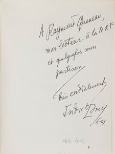 d’un Manifeste. Bel envoi a.s. à Raymond Queneau, daté 64.