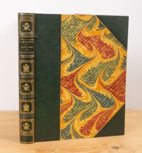 MASSON (Frédéric). Cavaliers de Napoléon. Paris, Boussod, Valadon et Cie, 1895. In-folio, demi-maroquin vert avec coins, dos à nerfs orné, tête dorée, couv. conservées sans le dos (Rel. signée, illisible). Édition originale ornée d'illustrations d'Édouard Detaille. Exemplaire sur papier vélin.