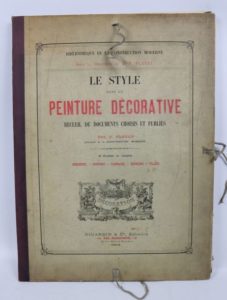 PLANAT. Le Style dans la peinture décorative. Paris, Dujardin et Cie, s d. (vers 1890). In-folio, en feuilles, chemise éditeur. Recueil complet des 40 planches en couleurs. Rousseurs, salissures. Chemise salie, frottée. De la bibliothèque Montagnon, faïenciers à Nevers.