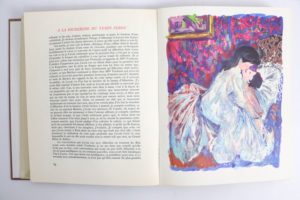 PROUST (Marcel). À la recherche du temps perdu. Paris, Plaisir du Livre, 1962-1963. 7 vol. in-4, emboitages éditeur. Illustrations couleurs hors texte de Grau-Sala. Aquarelle originale signée de l'artiste, avec envoi à M. Grosjean, sur le faux-titre de Du côté de chez Swann.