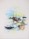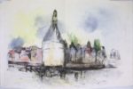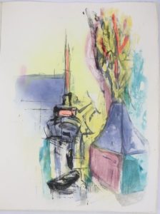 VERLAINE (Paul). Quinze jours en Hollande. Lettres à un ami. Paris, Vialetay, 1964. In-folio, en feuilles, emboîtage éditeur (frotté). 54 eaux-fortes originales de Jean Marzelle. Tirage à 176 exemplaires signés par l'artiste et l'éditeur ; Un des 22 sur japon nacré contenant un dessin original, une suite en noir sur hollande, une suite en couleurs sur Rives. Il est en outre enrichi d'une aquarelle originale signée de Marzelle, offerte à M. Antonin Grosjean.