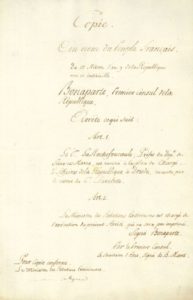 Charles Maurice de TALLEYRAND (1754-1838). P.S., 27 nivôse IX (13 janvier 1801) ; 1 page in-fol. Copie conforme d'un arrêté de Bonaparte nommant le citoyen La Rochefoucauld préfet de Seine et Marne, en remplacement de Lavalette.