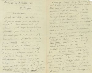 Jules RENARD (1864-1910). L.A.S., 28 novembre 1907, à un ami ; 3 pages et quart petit in-8. Prix Goncourt.Il sera là le 5 décembre et fait le tour des candidats. « J'ai lu le RAMUZ. Il y a des coins charmants, mais 200 pages de trop et c'est écrit !!! Rappelez-vous notre statut modifié : de langue française. Ce suisse a de l'aplomb. [] Je lis MOSELLY. Ça me semble un peu mièvre. J'entends beaucoup parler de VIGNAUD. Ça ne me parait qu'honorable [] Il y a du talent dans les Immémoriaux [de Victor SEGALEN], mais c'est d'une lecture éreintante []. Si Léon BLUM n'était pas riche, je vous proposerais son livre sur le mariage. C'est un livre jeune, audacieux et d'imagination, et Blum sait le français » [Le Prix Goncourt 1907 sera finalement attribué à Émile Moselly pour Terres lointaines].