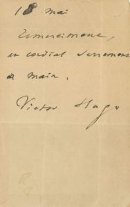 Victor HUGO (1802-1885). L.A.S., 18 mai, à M. Albert PINARD ; demi-page in-8, adresse (traces de …
