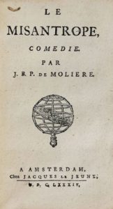 MOLIÈRE. Le Misanthrope. Amsterdam, Lejeune, 1684. In-12, vélin moderne. Frontispice, 96 pp. Trous de vers en marge des premiers ff.