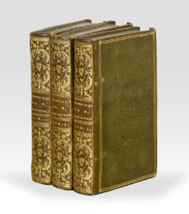 [COURTILZ DE SANDRAS (Gatien de)] ♦ Mémoires de Mr d'Artagnan, Capitaine-Lieutenant de la première Compagnie des Mousquetaires du Roi. Cologne, Pierre Marteau, 1701. 3 volumes in-12, maroquin olive à recouvrement, triple filet, dos orné de feuillages entourant un médaillon chargé du chiffre VV croisé couronné, roulette intérieure, tranches dorées sur marbrure (Reliure de l'époque). Seconde édition de ces célèbres mémoires qui ont notamment inspiré Alexandre Dumas pour l'écriture de son chef-d'œuvre.