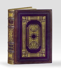 Paris, E. Dubois, Imprimerie de Gaultier-Laguionie, 1825. In-folio, maroquin violet à long grain, plats encadrés de quatre filets dorés et d'une roulette à froid, grand cadre au milieu dessiné par une large bordure à motifs de rinceaux, entrelacs et torsades, le centre occupé par une importante plaque dorée rectangulaire et cintrée aux deux extrémités, ornée de coquilles et de fleurons divers, dos richement orné, dentelle intérieure, tranches dorées, étui moderne (Thouvenin).