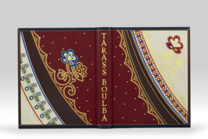 Paris, La Pléiade, 1931. In-4, maroquin rouge, plats ornés d'une large composition mosaïquée en divers tons et en partie légèrement en creux, évoquant les broderies folkloriques cosaques, dos lisse portant le titre doré, doublure et gardes de daim rouge et bleu, tête dorée et ciselée, non rogné, couverture et dos, chemise et étui (Castiglioni XII-2014).