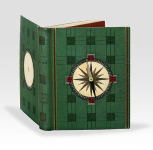 Paris, Les arts et le livre, 1926. In-4, maroquin vert, sur un fond évoquant un tartan vert clair et vert foncé passant sur le dos, se détache au centre du premier plat une rose des vents à aiguilles brunes et noires, chacun des points cardinaux dans un carré rouge souligné de deux filets au palladium, même décor sur le second plat mais muet, encadrement intérieur frappé du même décor de tartan, doublure et gardes de toile brique, tranches dorées sur témoins, couverture et dos, chemise de papier gris foncé, étui (Pierre Legrain). 22 eaux-fortes originales de Dignimont, aquarellées au pochoir.