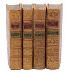 Paris, Hôtel de Thou, 1785. 4 volumes in-8 et un atlas in-4, basane écaille, dos orné, tranches marbrées (Reliure de l'époque).Première édition in-8 de la traduction française, due à Démeunier, accompagnée de la même illustration que l'édition in-4 parue simultanément. Celle-ci comprend 88 figures et cartes hors texte, dépliantes pour la plupart, réunies dans le volume d'atlas.