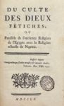 [BROSSES (Charles de)] — Du culte des dieux fétiches, ou Parallèle de l'ancienne religion de l'Égypte avec la religion actuelle de Nigritie. S.l.n.n.,