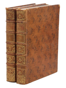 Paris, Panckoucke, 1778. 2 volumes in-4, basane marbrée, dos orné, tranches marbrées (Reliure de l'époque).Édition originale de la traduction française de Suard et Jansen, parue un an après l'édition anglaise et la traduction française d'Eidous. Elle donne les huit premiers livres de l'ouvrage, les deux derniers livres ne paraîtront qu'en 1798 dans une traduction de Morellet.