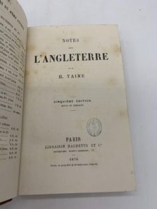 18- (ANGLETERRE). TAINE (Hippolyte). Notes sur l'Angleterre. Cinquième édition revue et …