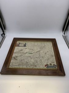 30- (AUVERGNE). [CARTE] - DU BOUCHET (Sr). Carte du Pais d'Auvergne. Dédiée à Haut et Puissant Seigr Gaspar de Coligny. A Paris, chez Michel Van Lochom, 1645, 54 x 43, cadre en bois dorés, sous verre (cadre moderne). Marges rognées.