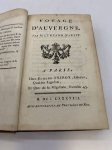 34- (AUVERGNE). LE GRAND D'AUSSY (Pierre-Jean-Baptiste). Voyage d'Auvergne. Paris, Onfroy, 1788, …