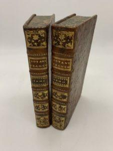 43- BARBEU DU BOURG (Jacques). Le Botaniste françois, comprenant toutes les plantes communes & usuelles, disposées suivant une nouvelle méthode, & décrites en langue vulgaire [ou Manuel d'herborisation]. Paris, Lacombe, 1767, 2 vol. in-12, basane fauve marbrée, dos à nerfs orné, tranches marbrées (reliure de l'époque). Édition originale de ce manuel très pédagogique qui adapte les principes de Linné et de Tournefort à l'apprentissage des médecins et des herboristes. Ex-libris manuscrit De Faucamberge, D.M. (Docteur en médecine).